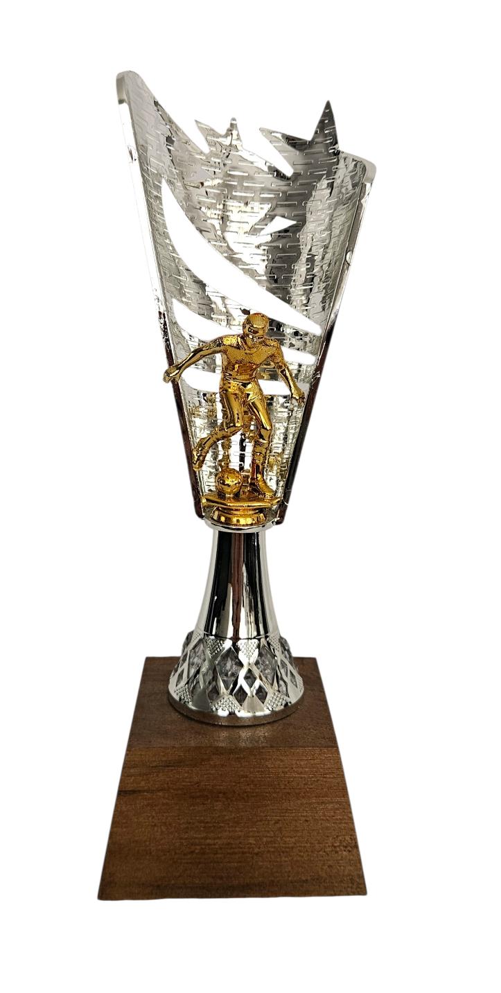 Trofeo de fútbol, moderno y llamativo para premiaciones.