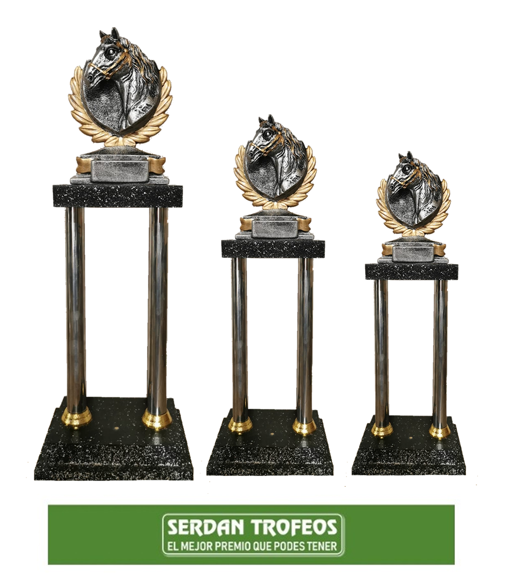 TROFEOS CON PIEZA EN RESINA, CAÑOS DE METAL Y MDF