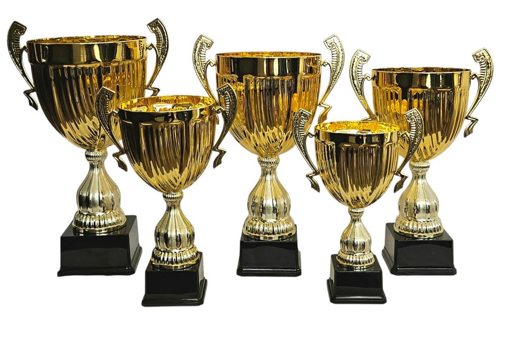 COPA EN METAL CON ASAS, LINEA ITALIANA. CON BASE DE MADERA O BASE NEGRA