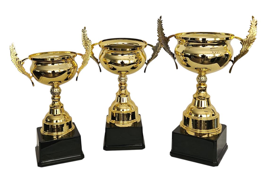COPA EN METAL DORADO CON ASAS, LINEA ITALIANA. CON BASE DE MADERA O BASE NEGRA.