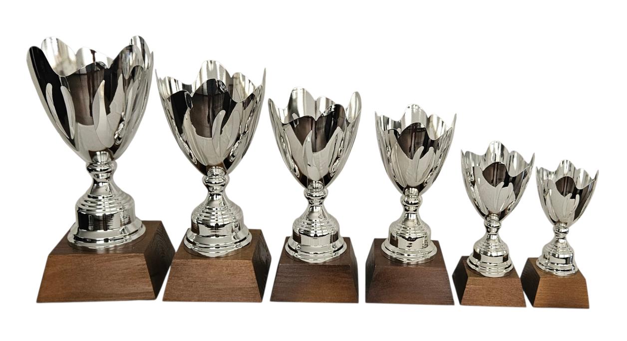 COPA EN METAL PLATEADO, LINEA ITALIANA. CON BASE DE MADERA O NEGRA