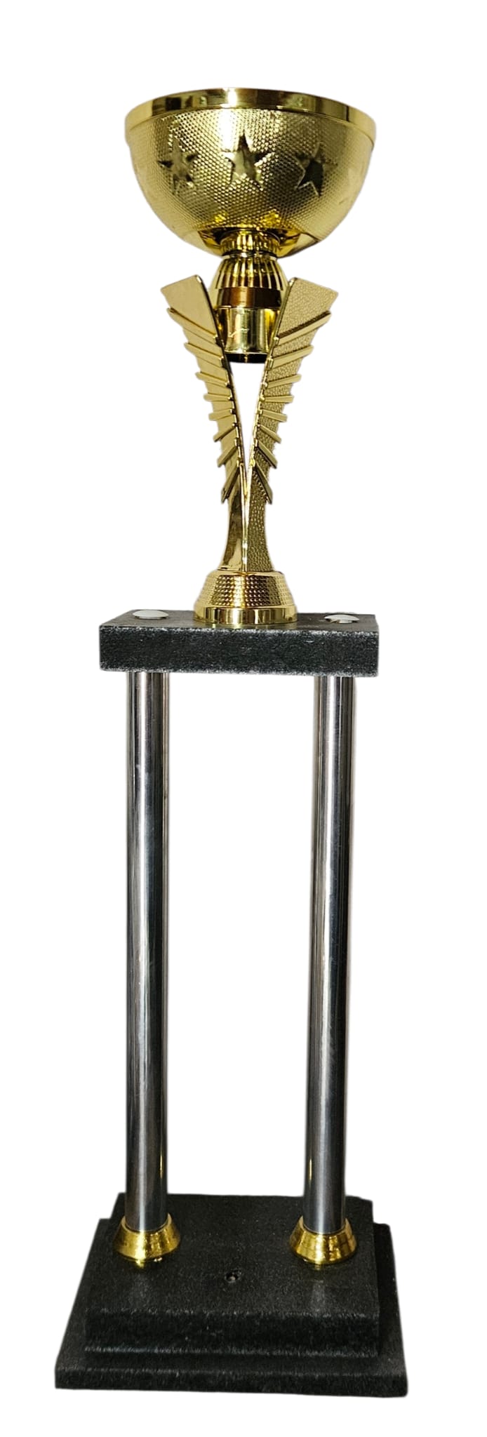 TROFEOS CON COPA METALIZADA, CAÑOS DE METAL Y MDF